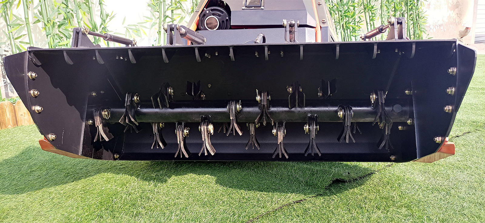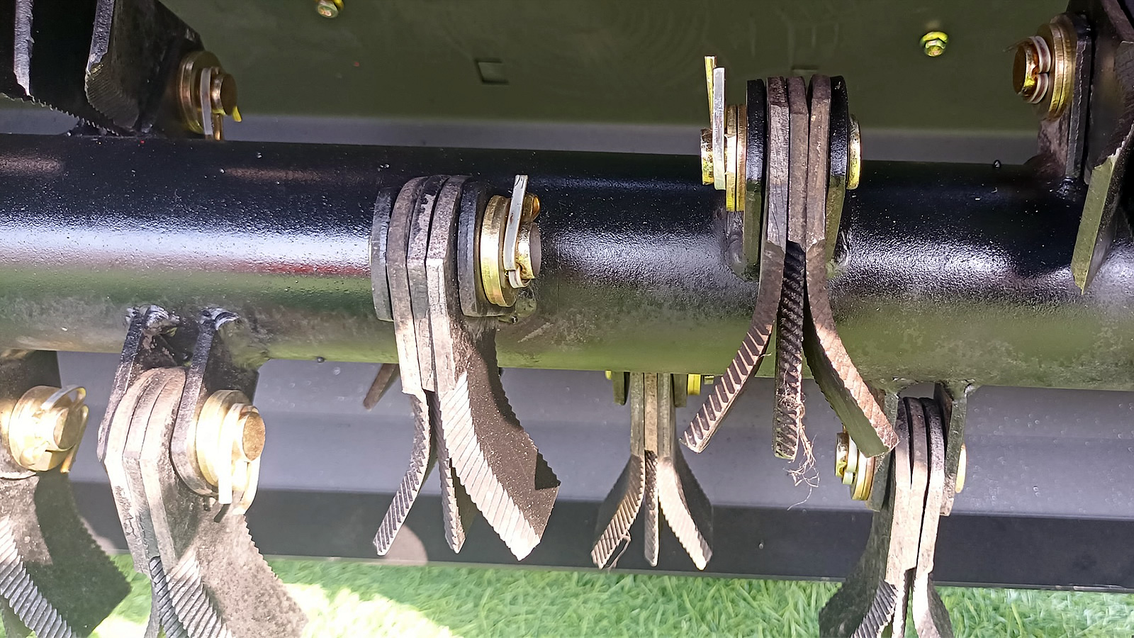 Their serrated cutting edges are designed to prevent grass from sticking during mowing, especially fresh grass.