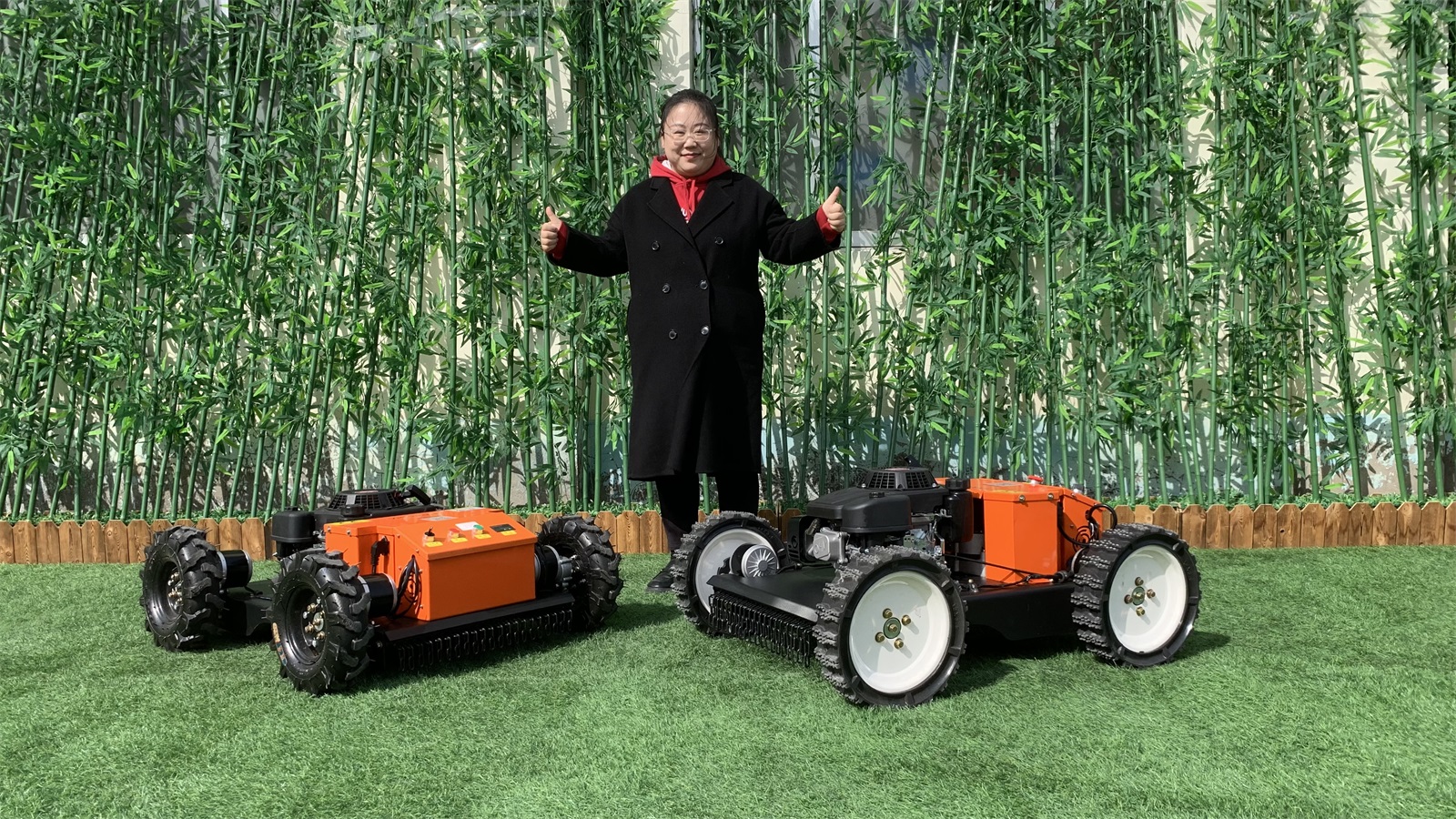 - rubber track 2 cylinder 4 stroke gasoline engine artificial intelligent customization color wireless radio control flail mower